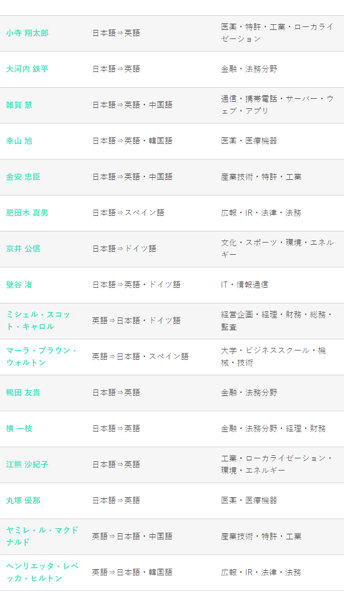 各言語、分野に応じて当社では担当を分けております。